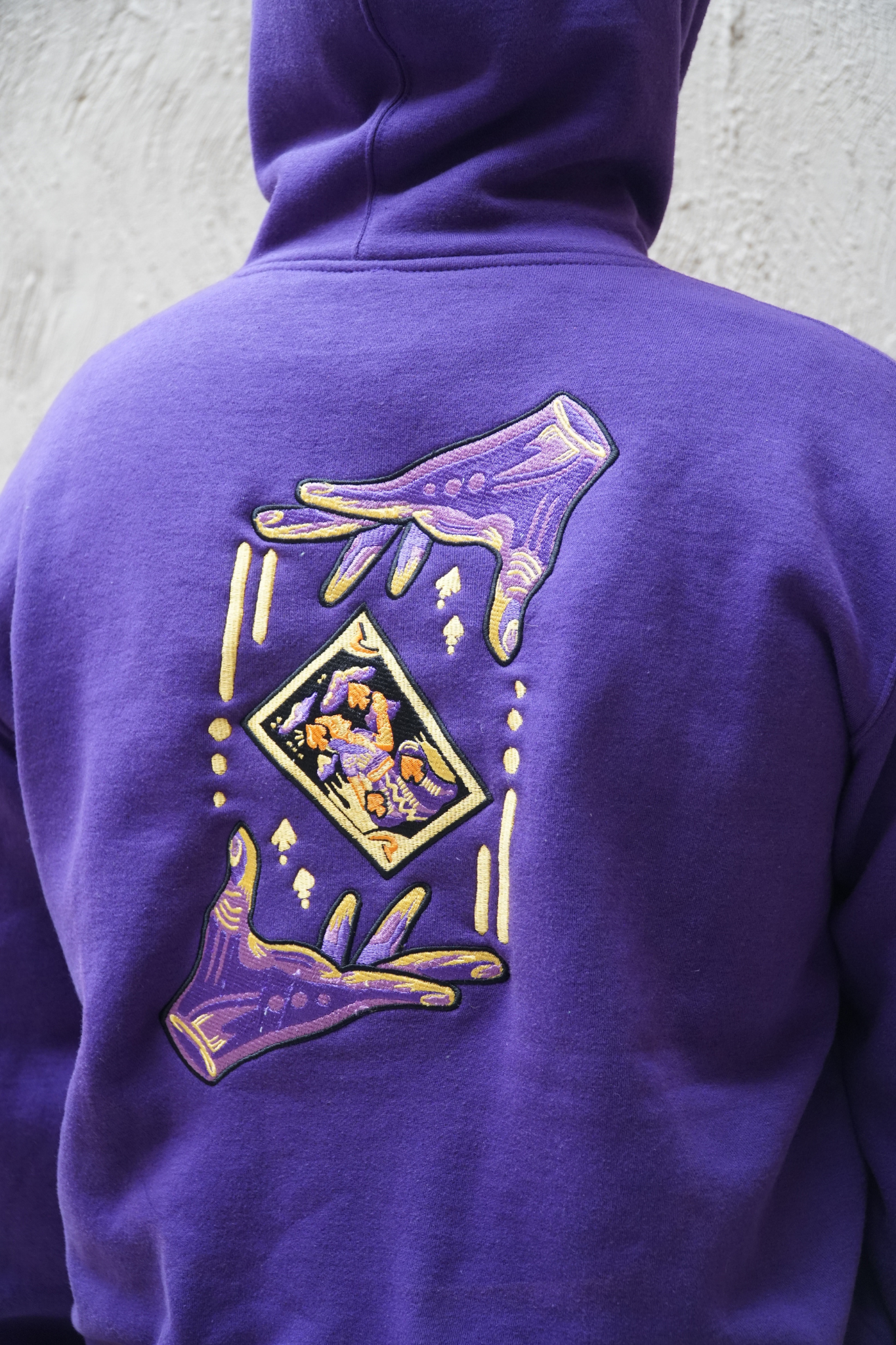 The Jester stands out with its unique fully embroidered illustration and relaxed fit. Made from high-quality, breathable material, this rich purple hoodie is a one-of-a-kind piece providing ultimate comfort while making a statement.